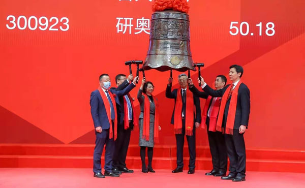2020年12月24日上午9時25分,伴隨著寶鐘悅耳的敲擊聲,研奧股份在深圳交易所創業板成功掛牌上市,股票代碼:300923,研奧股份本次發行價為28.28元/股,發行總量為1965萬股。研奧股份成功發行A股并上市,體現了公司同人同心,行穩致遠的精神面貌,也預示著公司將借力資本市場邁入新的征程,開啟可持續發展新的篇章。公司將牢牢把握國內外軌道交通行業快速發展的機遇,充分發揮自身在軌道交通車輛電氣裝備市場的競爭優勢,結合客戶需求和技術發展趨勢,不斷鞏固和提升公司在軌道交通裝備領域的市場地位。